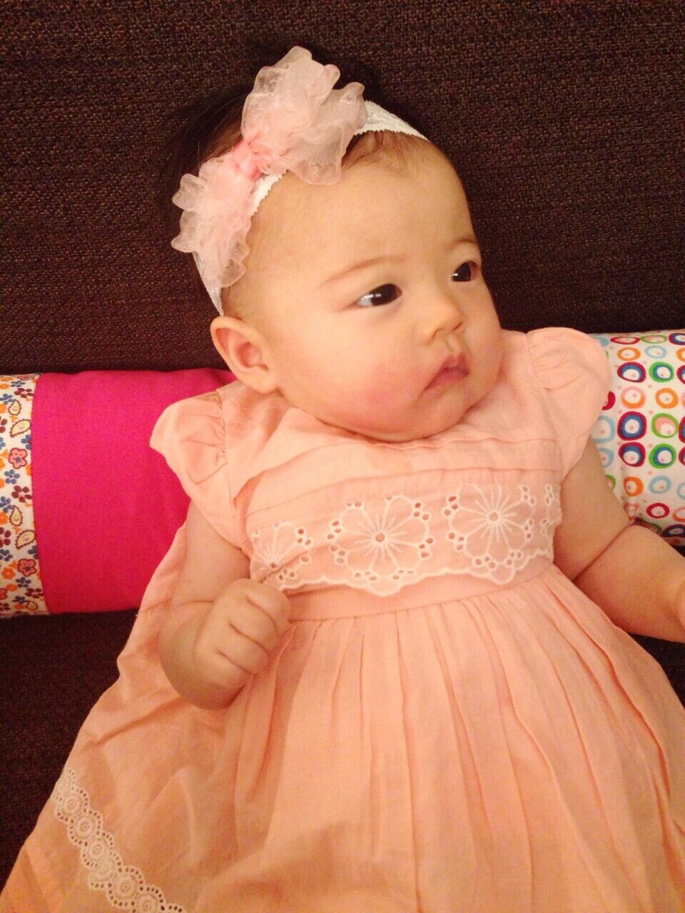 リボン部分は女の子らしいデザインのチュールフリルになっています。