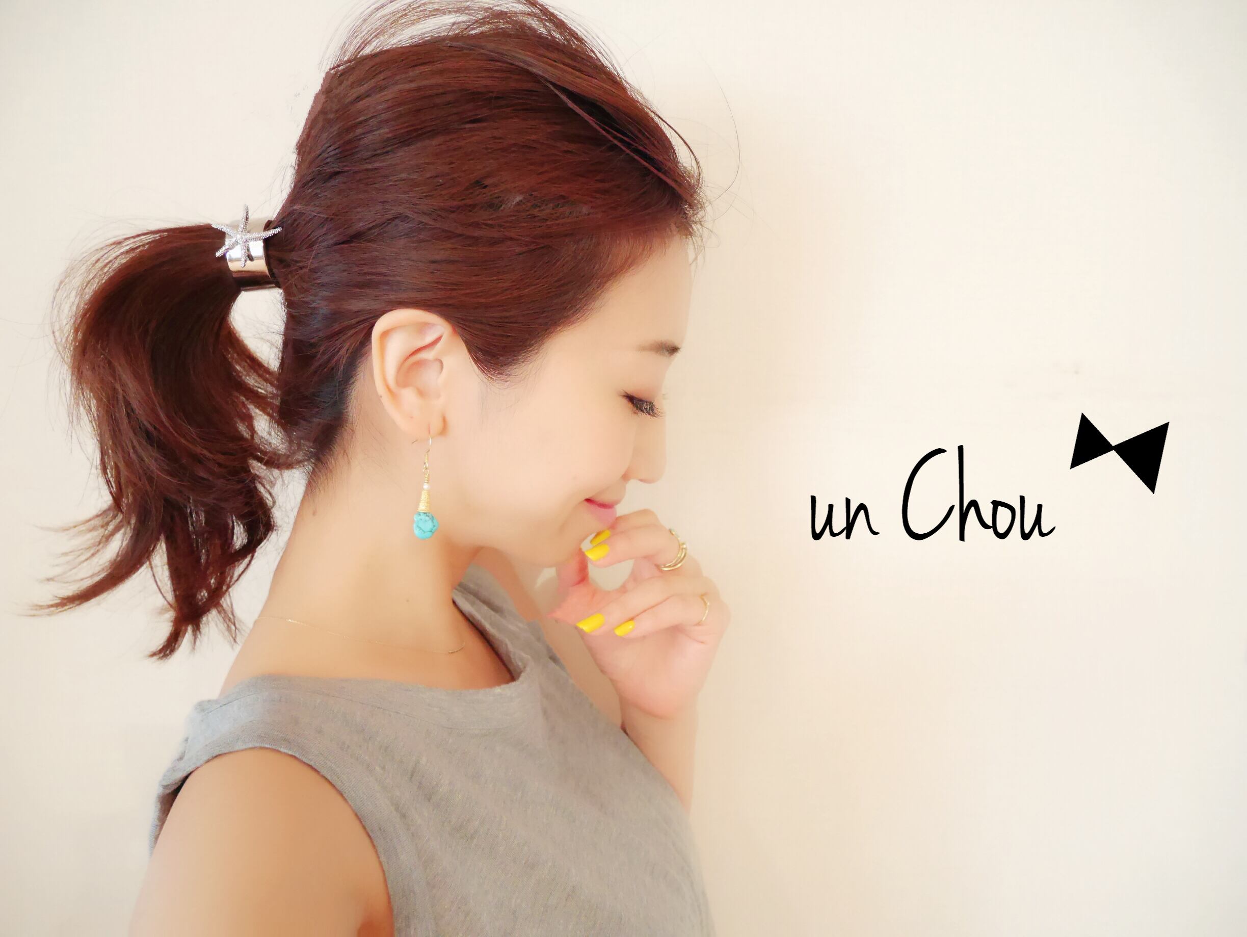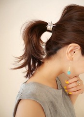 ポニーテールで結んだ髪をカフポニーではさむだけで可愛いヘアスタイルが簡単に作れます。