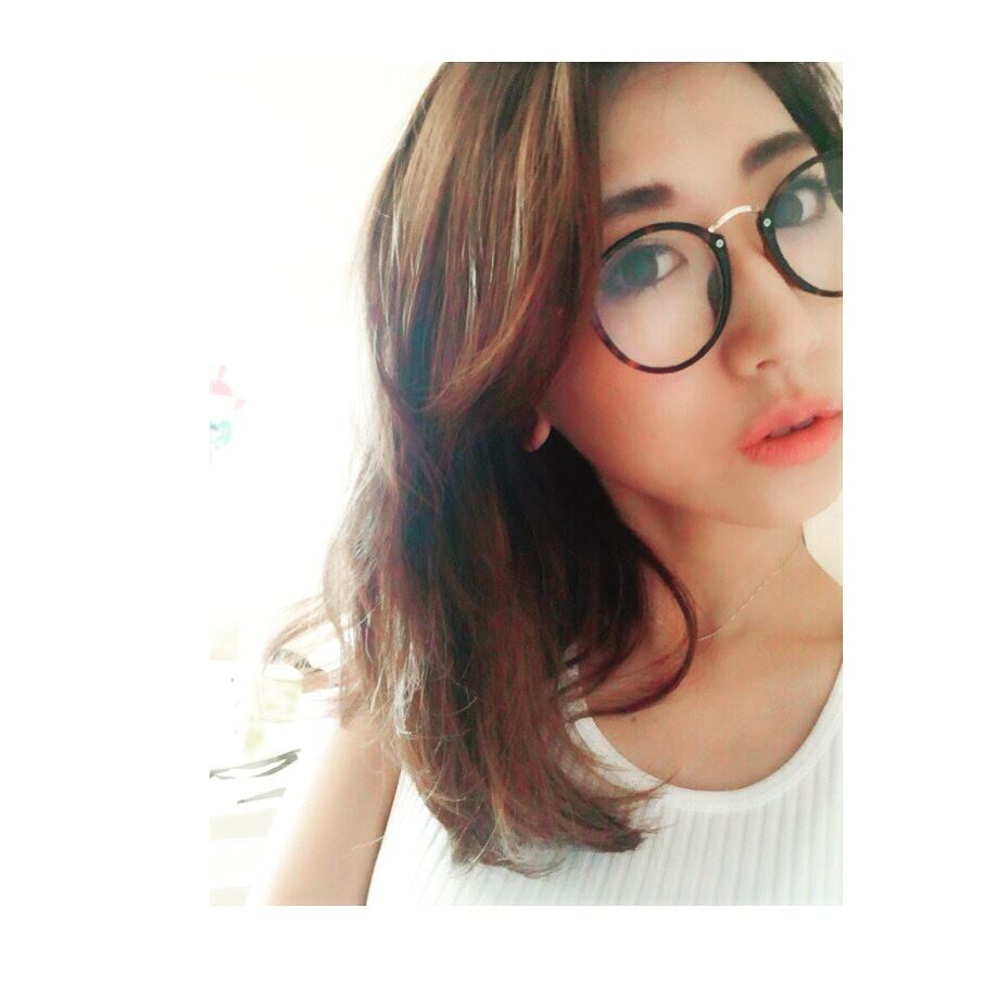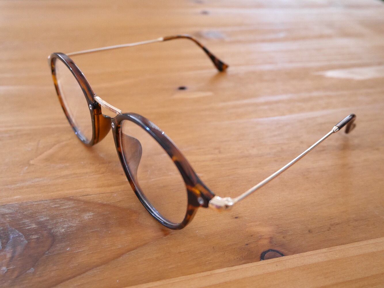 フレームが細く華奢な伊達めがね。