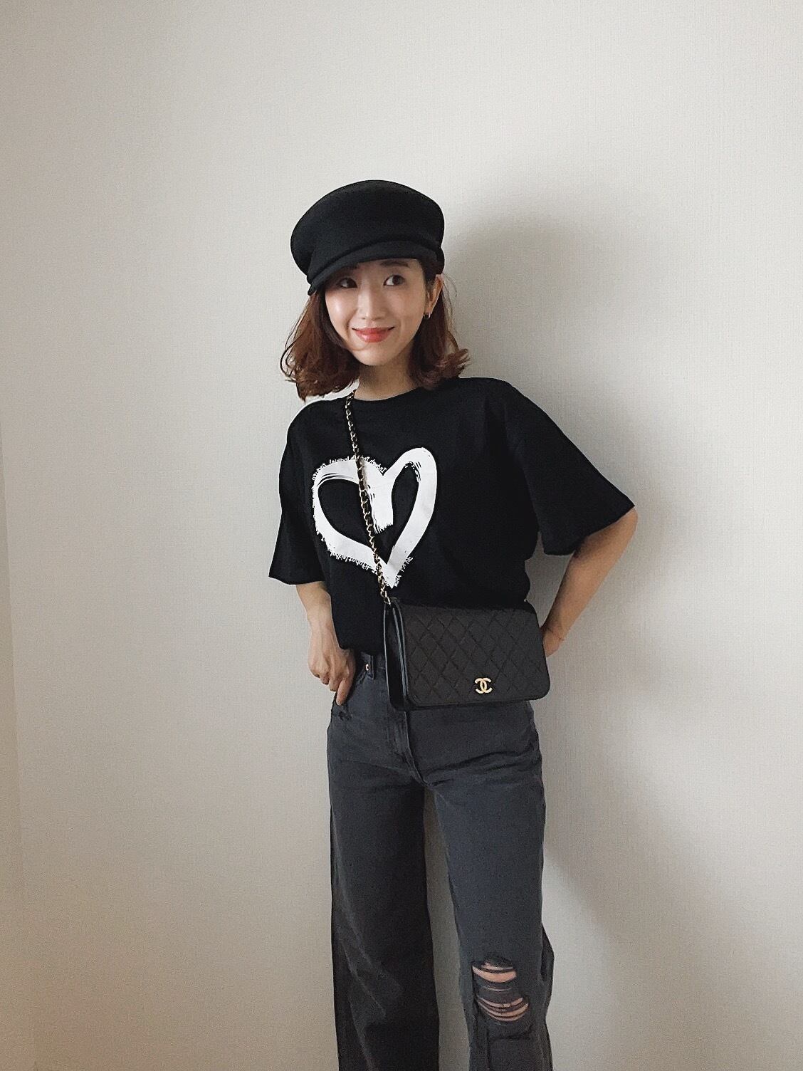 ハートのロゴが可愛いオーバーサイズのTシャツ♡
