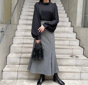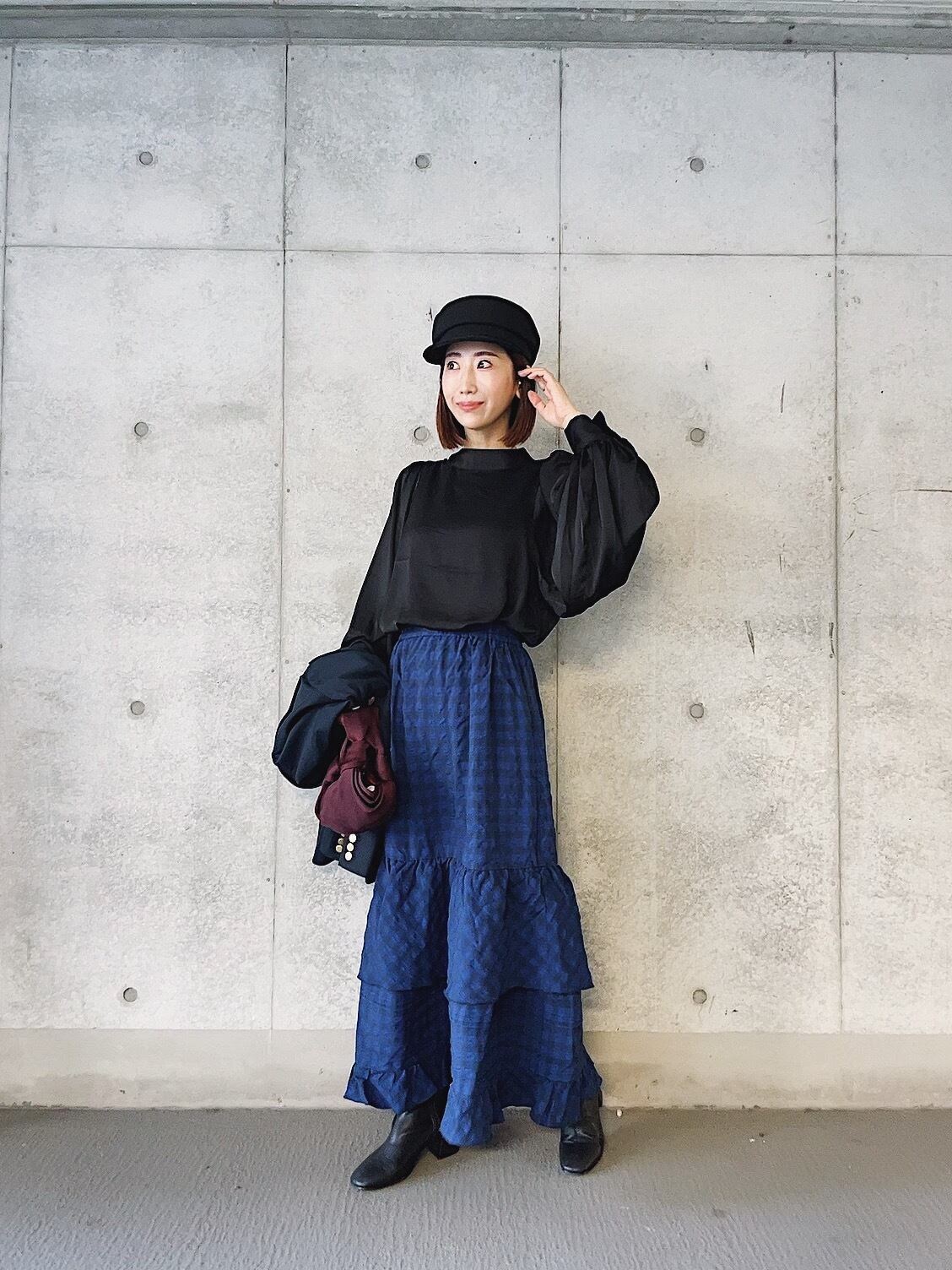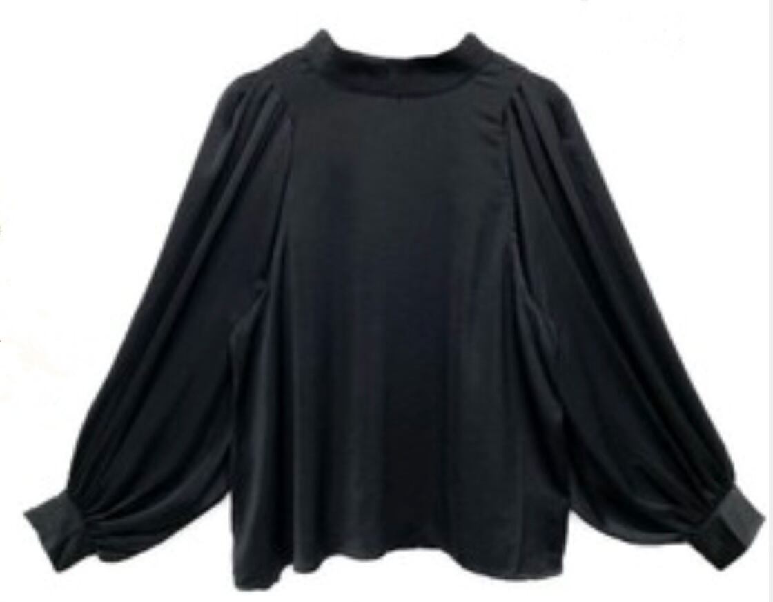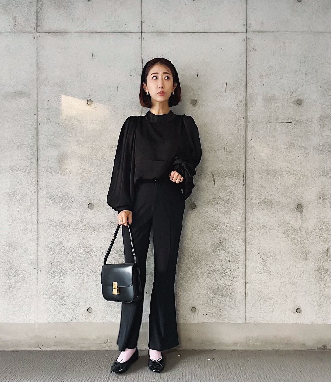 綺麗めでもカジュアルでも合わせれるサテンブラウス。