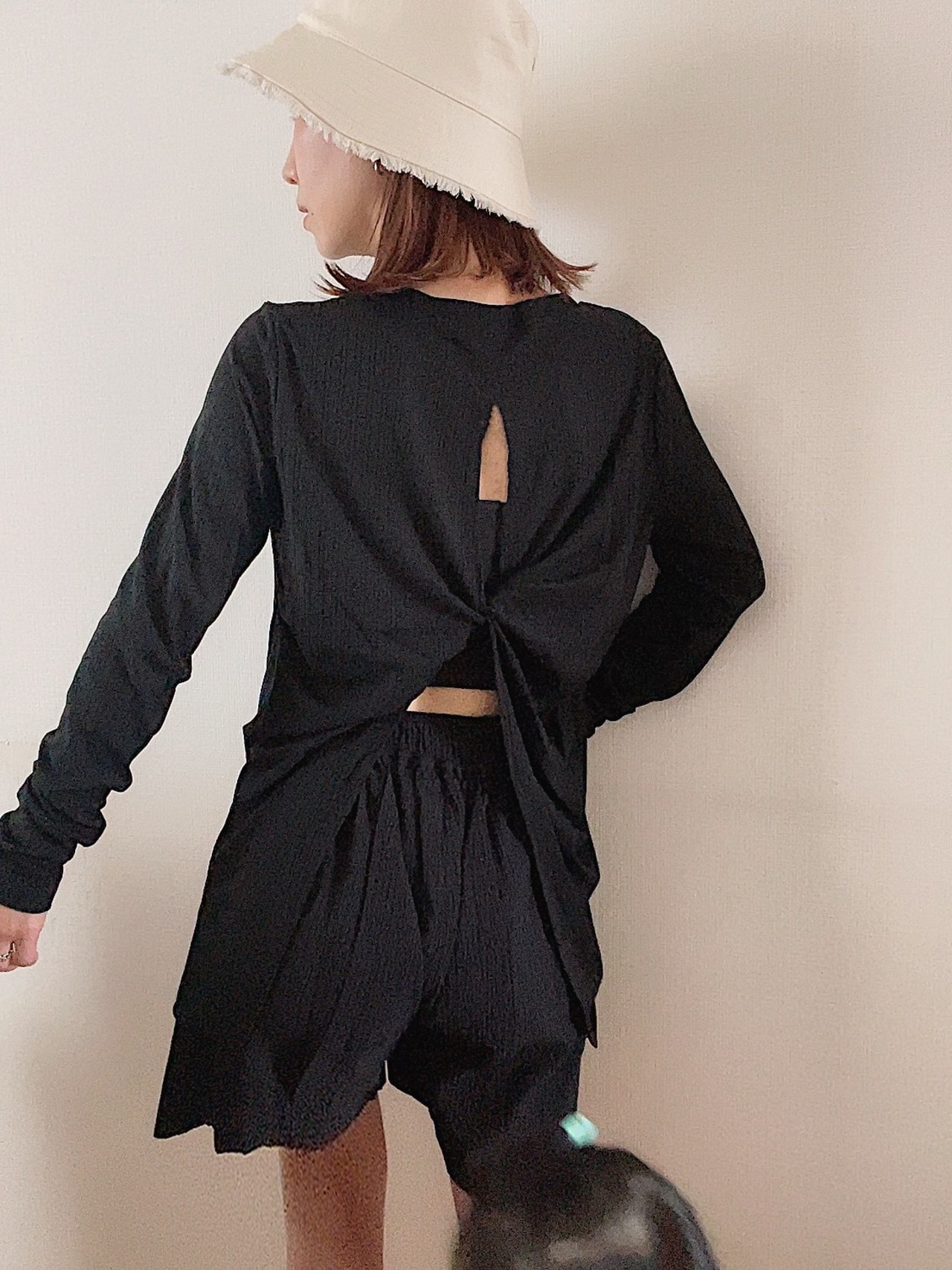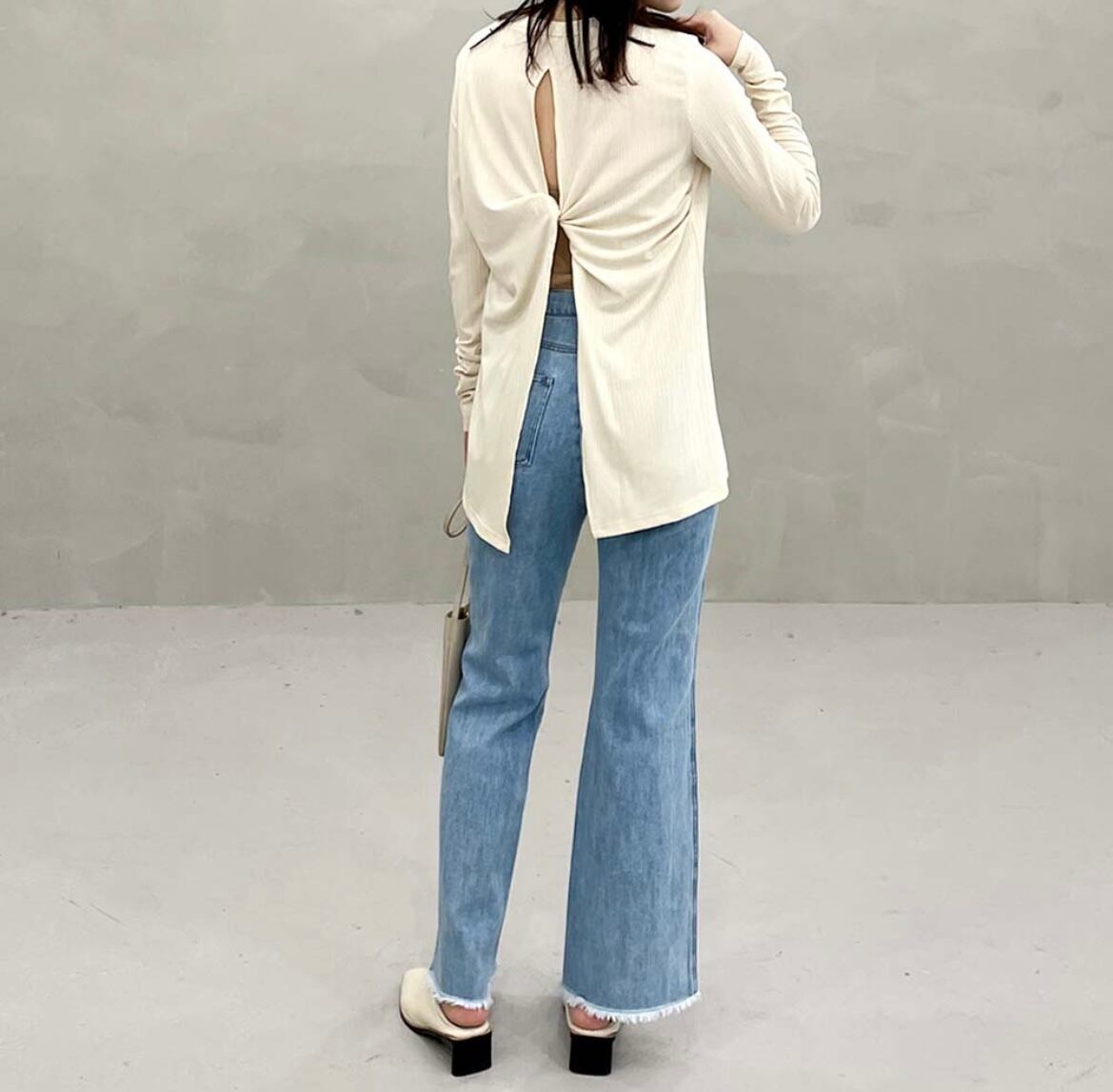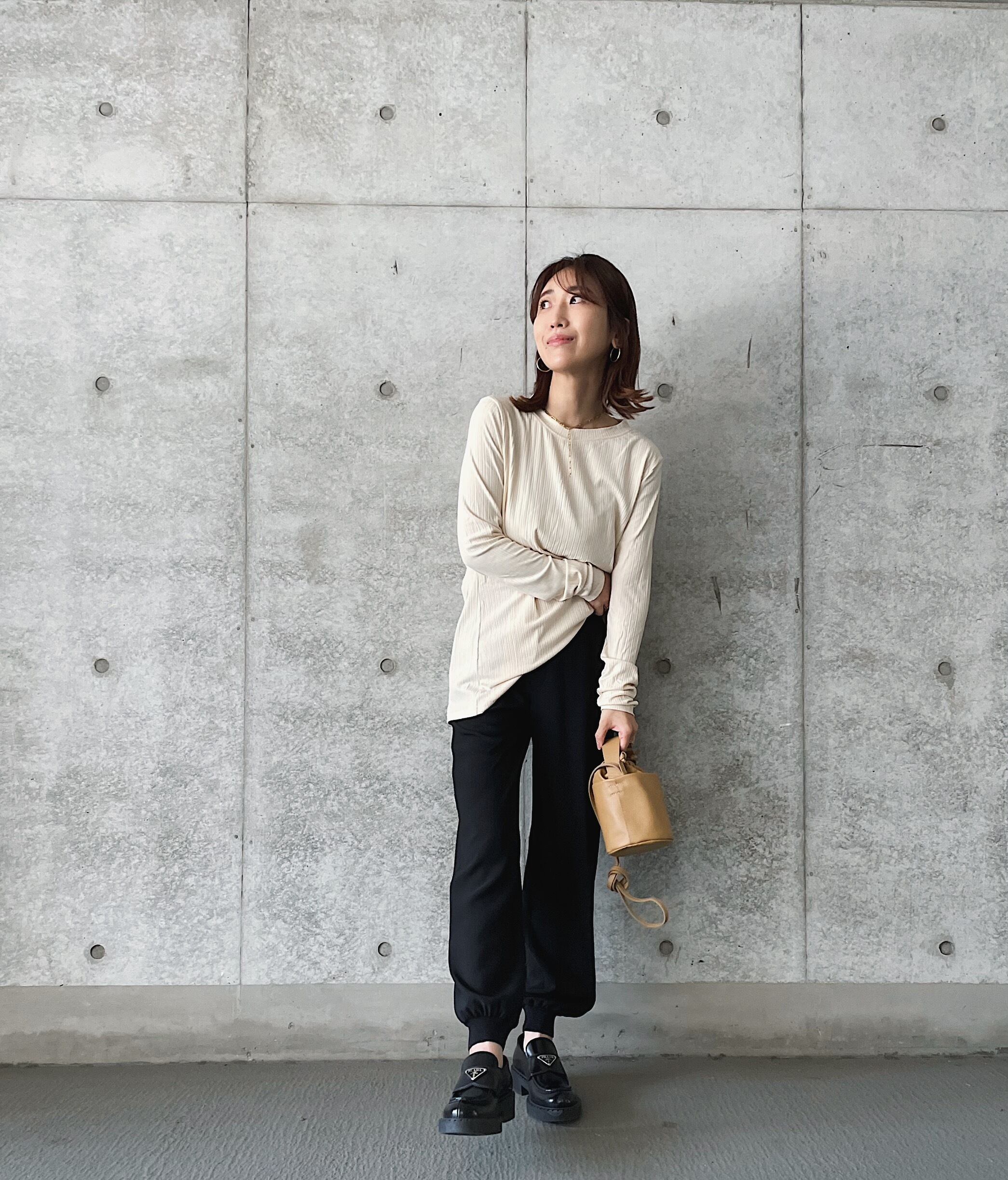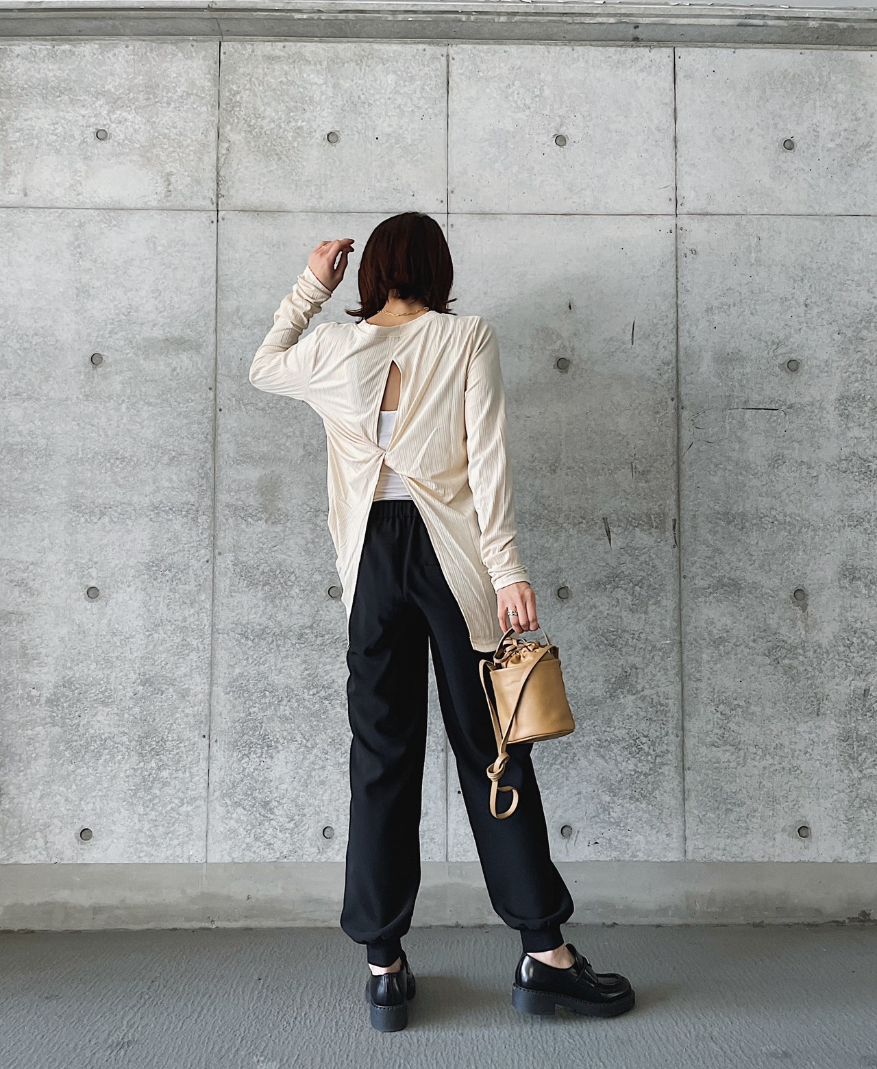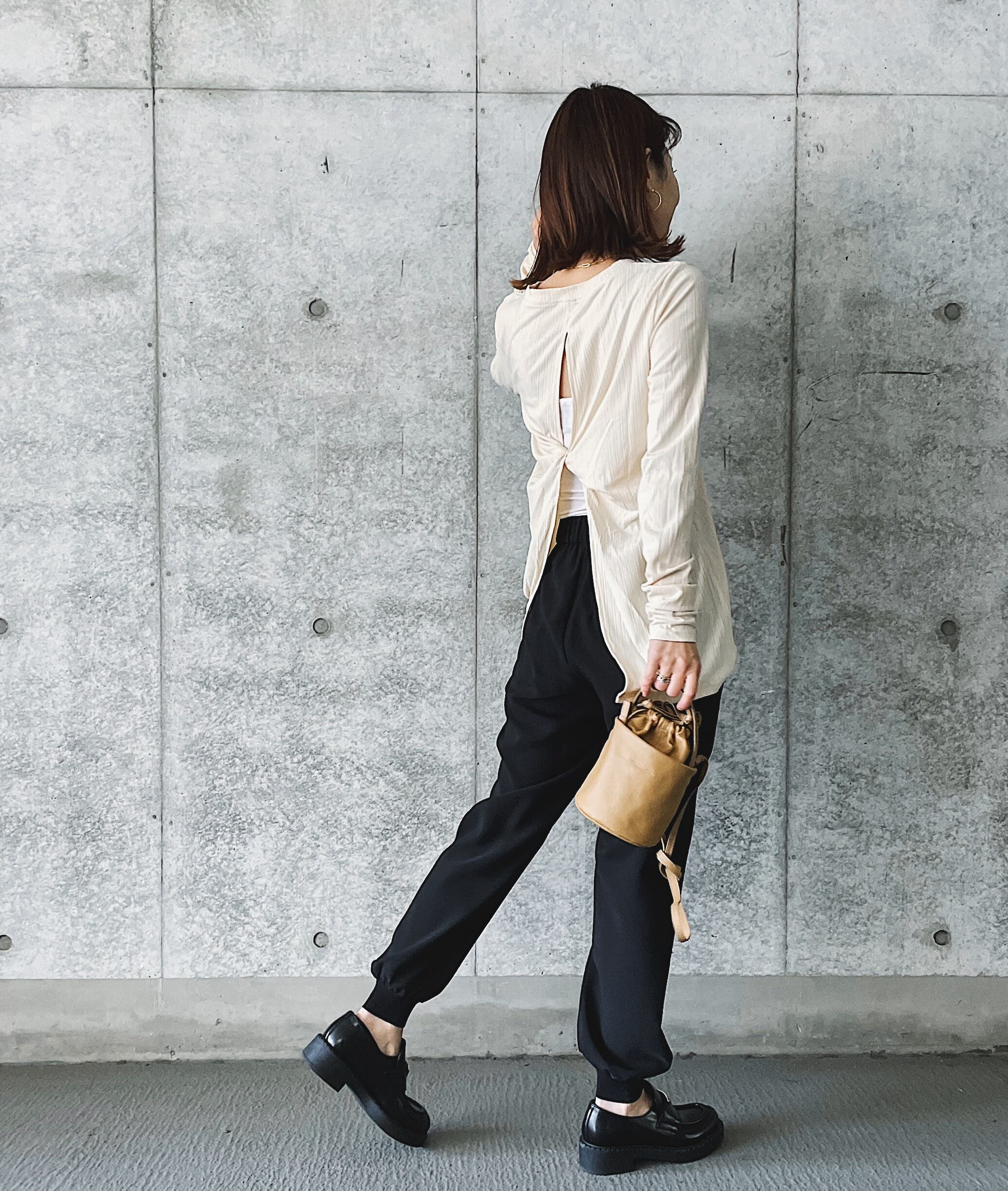 フロントはシンプルなデザインですのでどんなボトムスとも合わせていただけます。